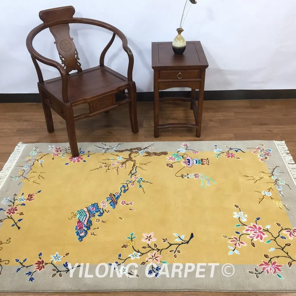YILONG 4'x6' Desert colored wool rug Chinese decorative arts hand knotted area rug (TJ010S4x6)
