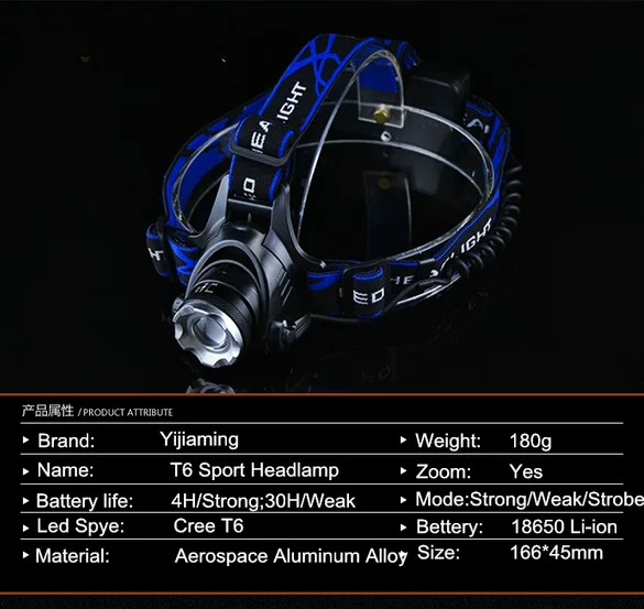 BEST SELLER free shipping via dhl 50pcs/lot cordless camping rechargeable zoomable headlamp led hunting light Y