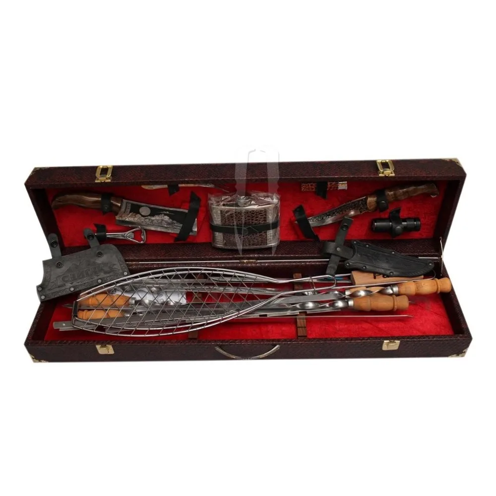 Barbecue set in a gift shish kebab set bbq case skewers 6 pcs camping rest meat skewers knives gril