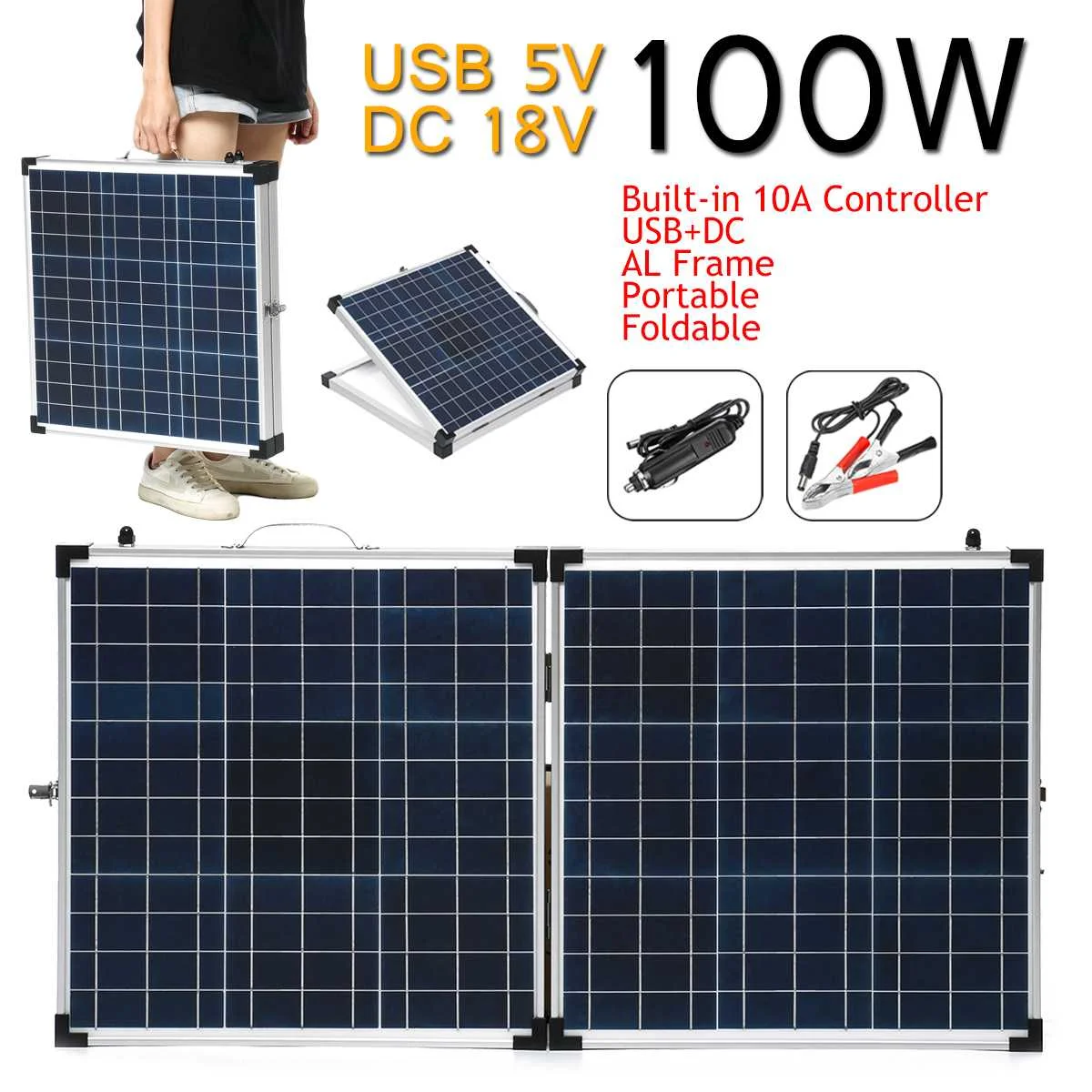 REVIEW TOP SELLER LEROY 100W 18V Folding Portable Solar Panel Solar cells battery charger with Car Charger for Outdoo