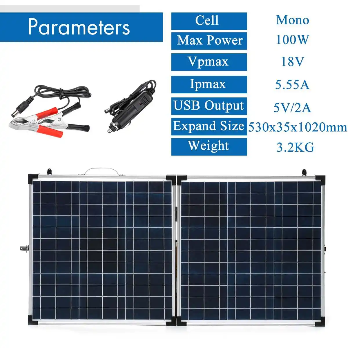 LEROY 100W 18V Folding Portable Solar Panel Solar cells battery charger with Car Charger for Outdoo