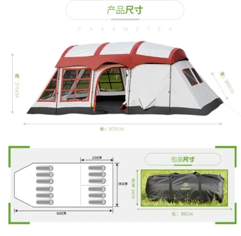 8 10 12 Persons Huge Double Layer Outdoor Family Two Bedrooms One Living Room House Shape Team Camp